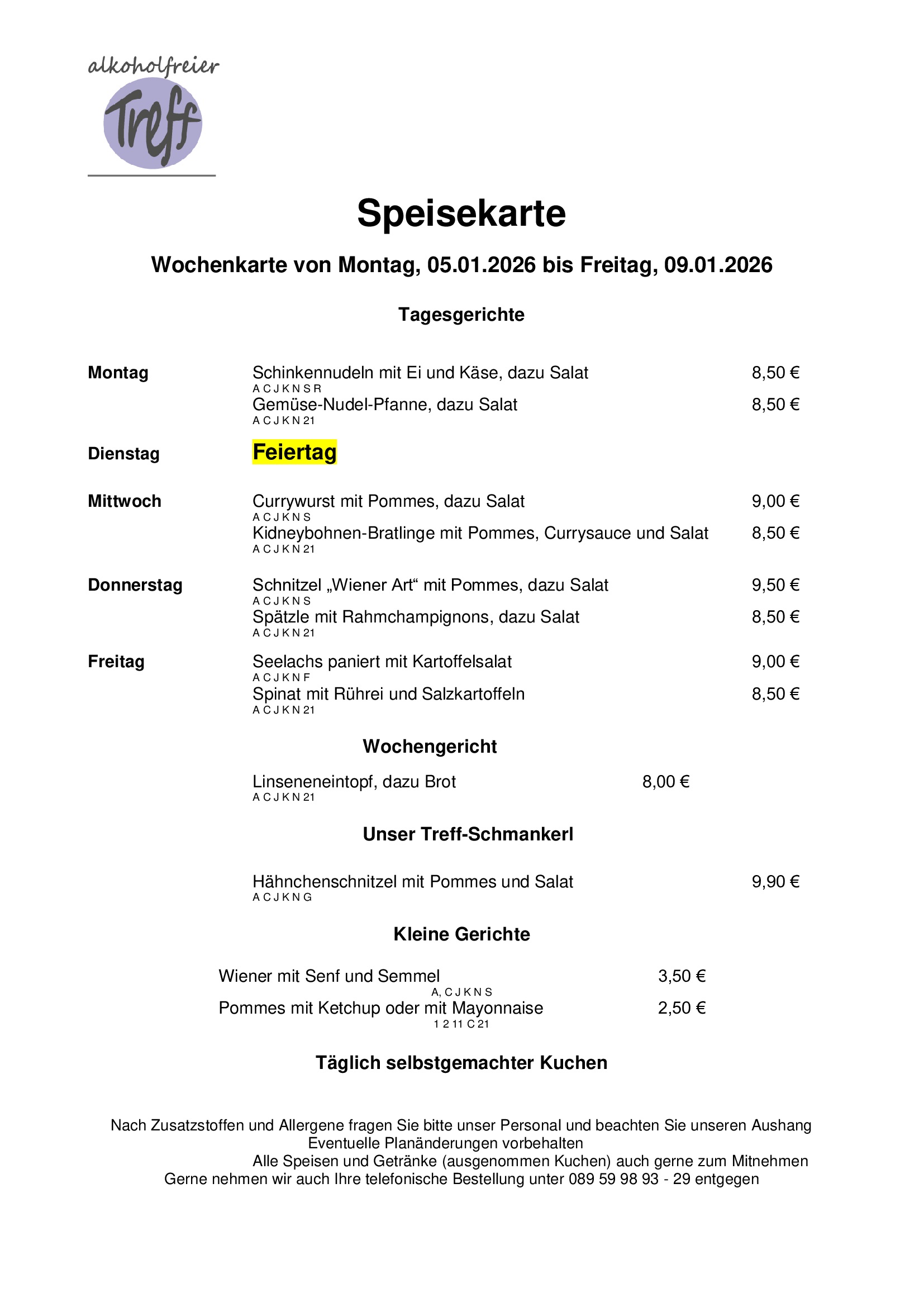 Der Treff hat Betriebsurlaub von Montag, 22.12.2025 – einschl. Sonntag, 04.01.2026!