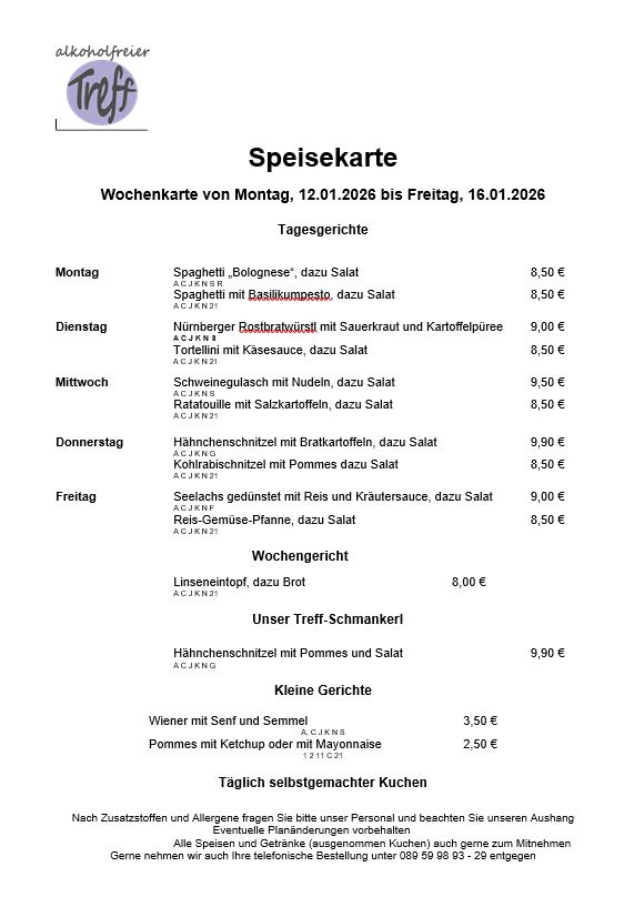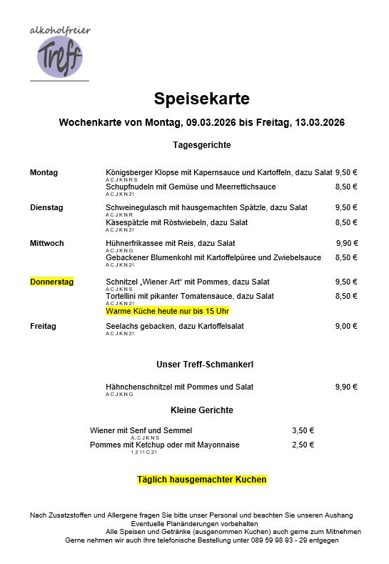 - Warme und kalte Speisen nach Wochenkarte